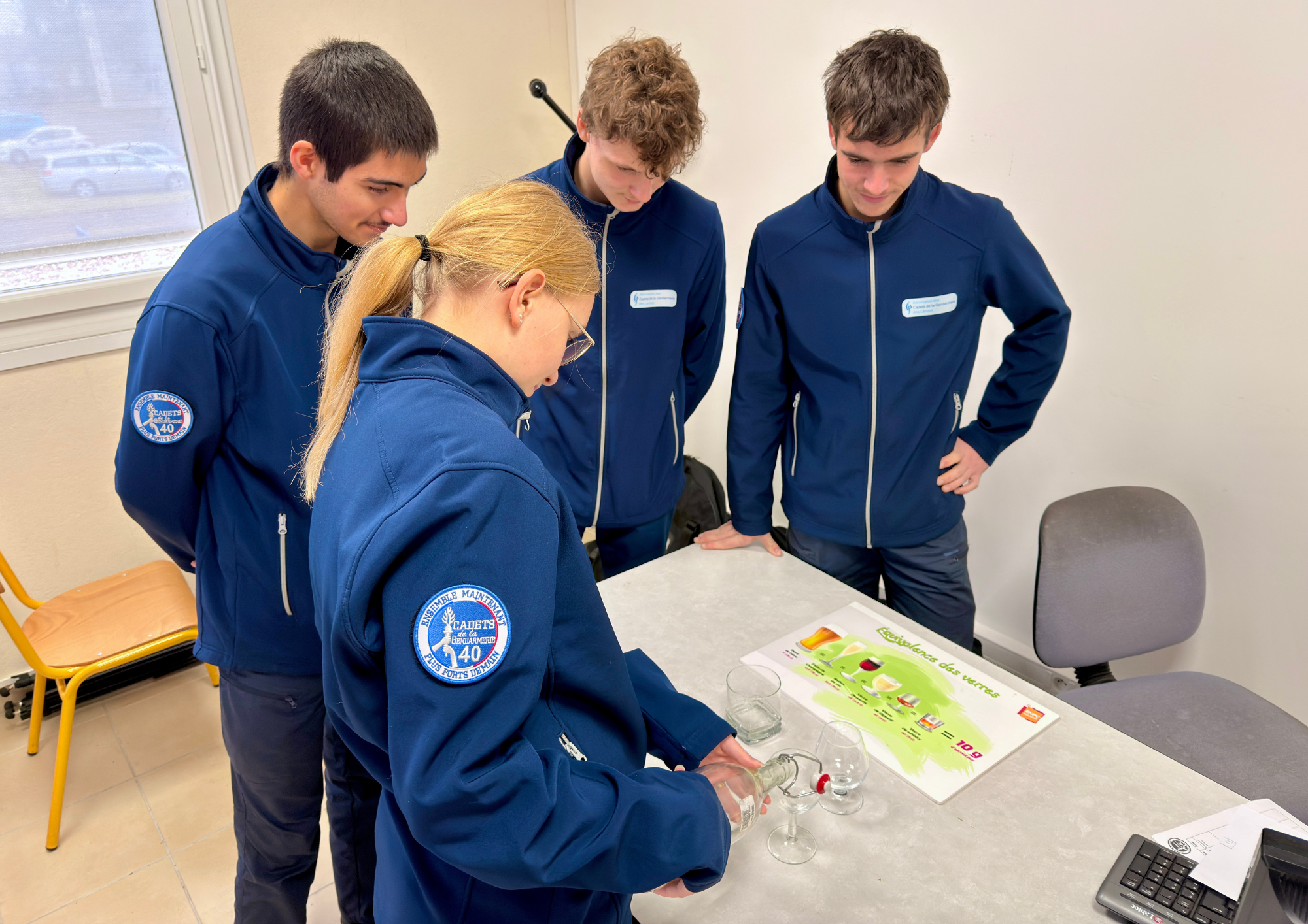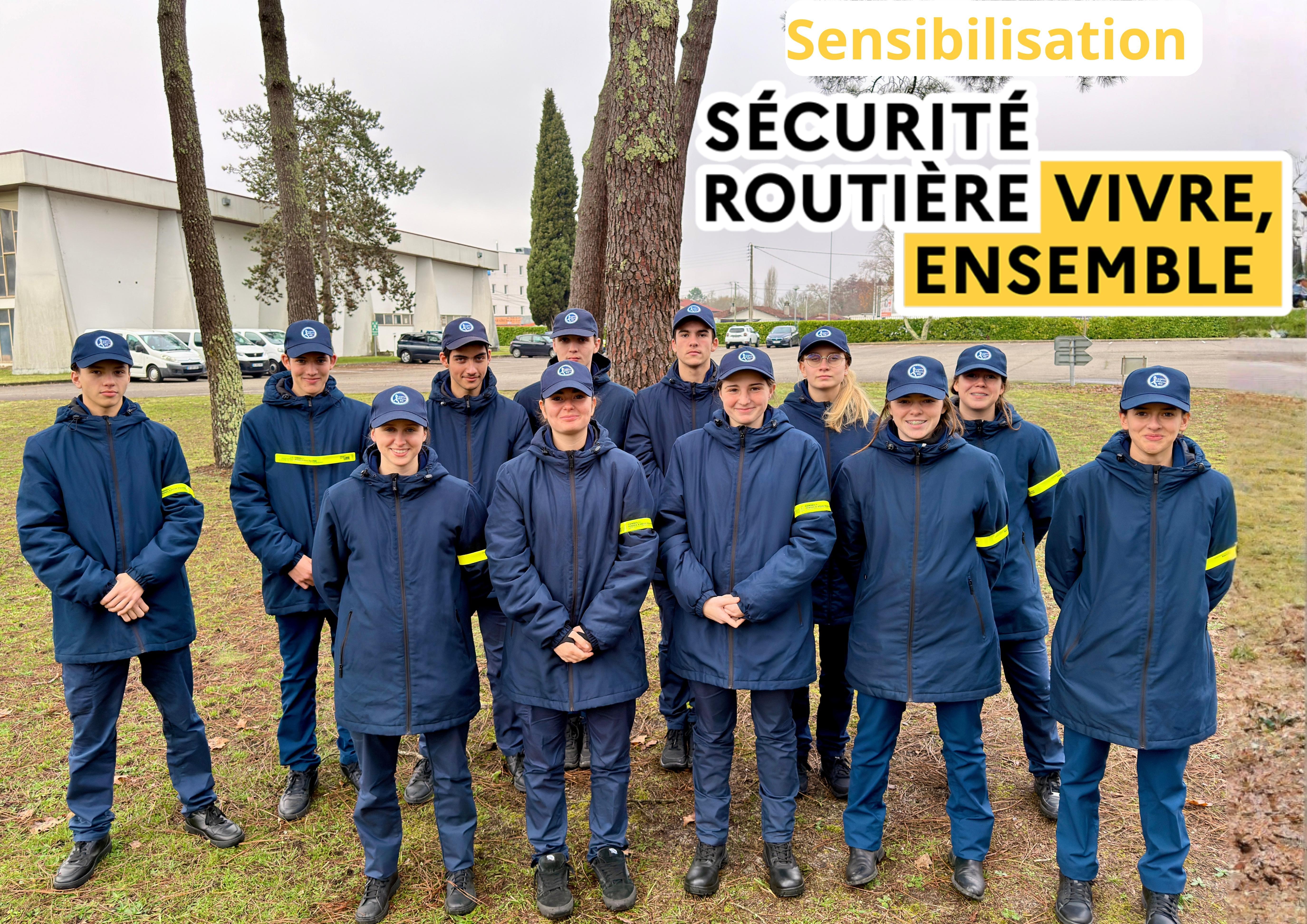Sensibilisation des Cadets Gendarmerie à la Sécurité Routière par l'adjudant de réserve qui, en plus d'être encadrant des Cadets, est aussi Intervenant Départemental de Sécurité Routière à la Préfecture des Landes.