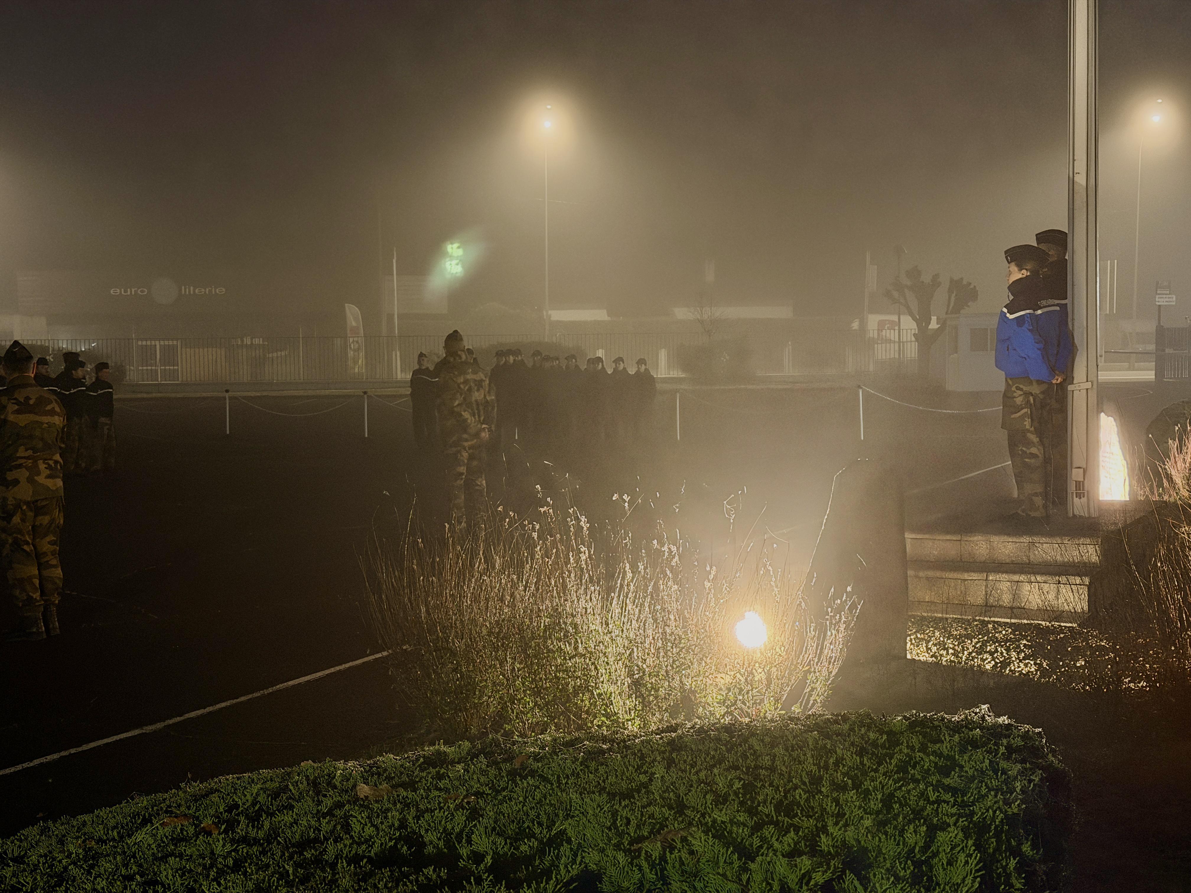⏫️ Remarquable cliché de notre reporter photos, réserviste Gendarmerie, chargé de la communication. Cette photo prise ce dimanche matin à 7h, dans le brouillard, témoigne de l'engagement des jeunes cadets levés depuis 06h, au lycée Wlérick de MONT-DE-MARSAN, pour un petit déjeuner à 07h au mess de l'escadron Gendarmerie Mobile, afin d'être présents à 07h40 sur la place d'armes pour la levée des couleurs et le chant de la Marseillaise.
