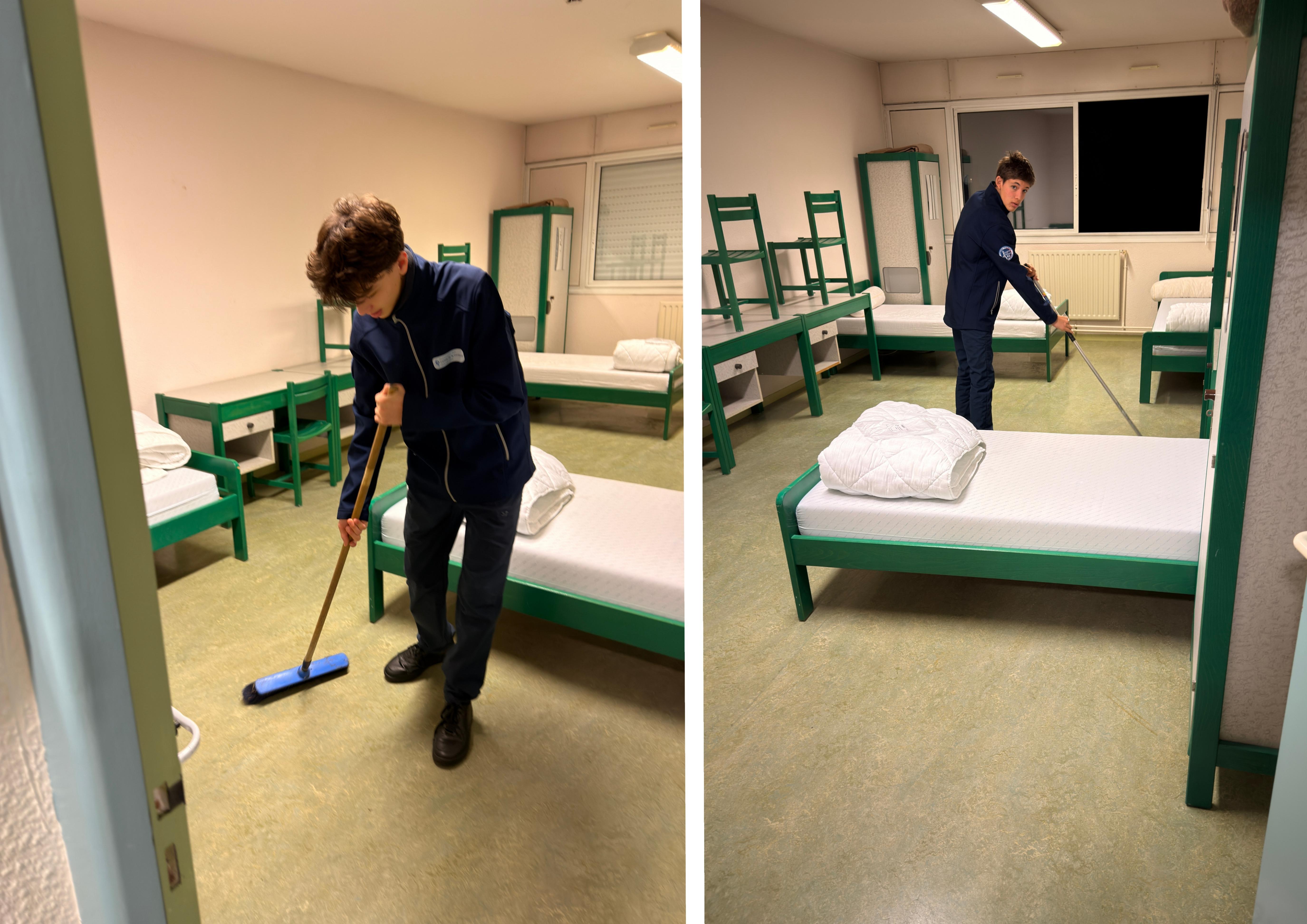 L'apprentissage passe aussi par l'accomplissement des tâches ménagères ; certains cadets sont visiblement très débutants !!!