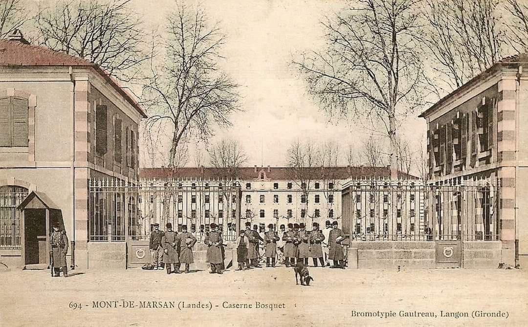Cette caserne Pierre BOSQUET, achevée en 1876, voit ses 1ères compagnies arrivées de Bayonne pour s'installer à MONT-DE-MARSAN. Elle accueillera des militaires jusque 1997.