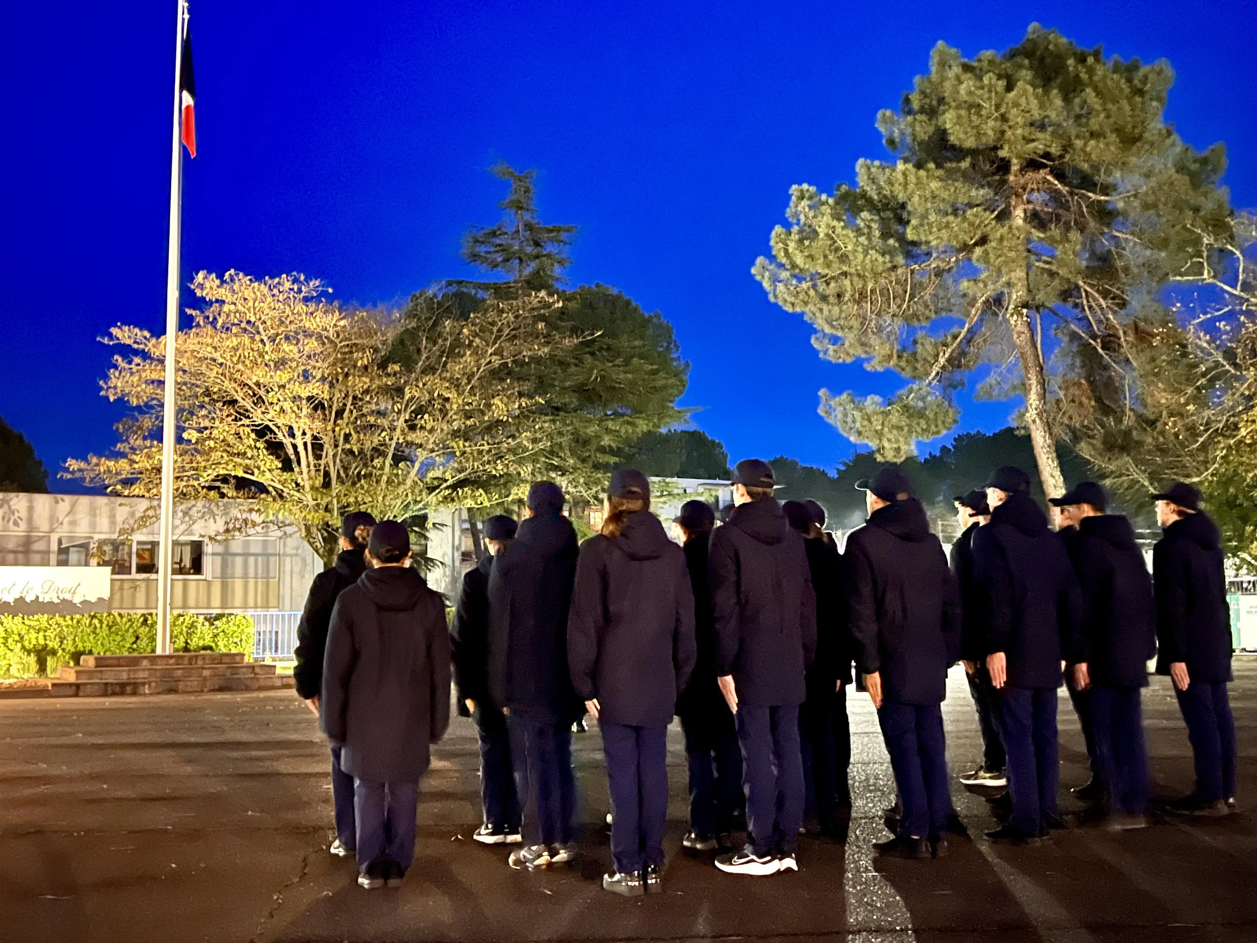 Samedi 18h45 - Les Cadets de la Gendarmerie des Landes découvre nt l’ordre serré (marcher au pas) sur la place d’armes de la caserne Maridor à MINT-DE-MARSAN.
